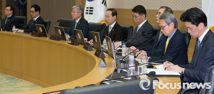 (세종=포커스뉴스) 19일 오전 세종시 정부세종청사 국무회의장에서 서울-세종 영상회의로 열린 국무회의에 참석한 국무위원들이 황교안 총리의 모두발언을 경청하고 있다.