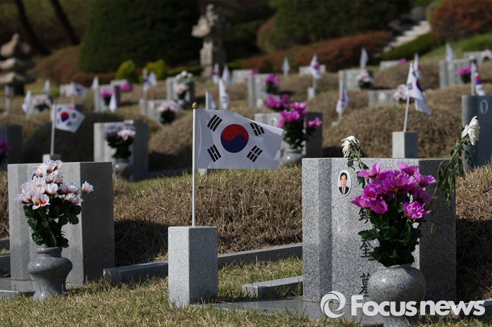 (서울=포커스뉴스) 4.19혁명 56주기를 맞는 19일 오전 서울 강북구 국립4.19 민주묘지에 태극기가 펄럭이고 있다.