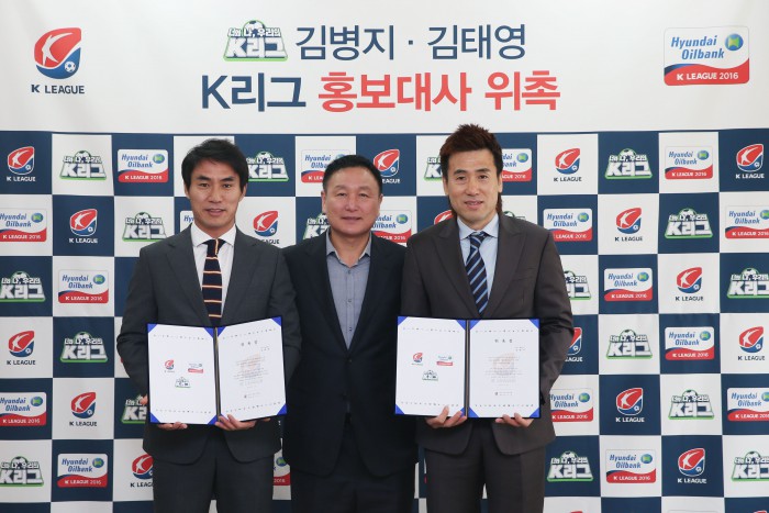 한국프로축구연맹은 19일 서울 종로구 신문로 축구회관에서 김병지와 김태영이 K리그 홍보위촉식을 열었다. 김병지와 김태영은 K리그 경기가 열리는 현장을 찾아 K리그를 알린다. 연맹이 진행하는 사회공헌활동이나 축구 유망주를 키우는 다양한 유소년 지원 활동에도 참여한다.