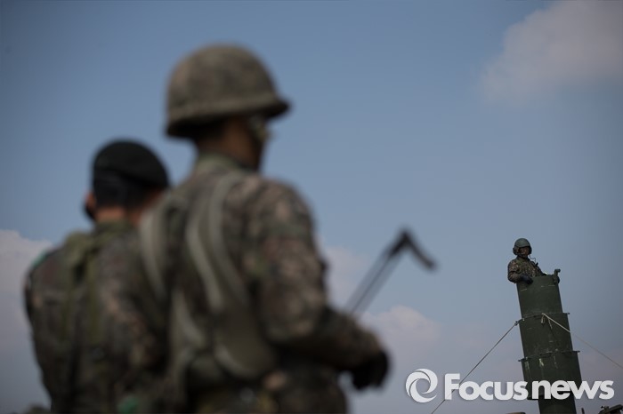 (여주=포커스뉴스) 19일 오전 경기도 여주시 남한강 일대에서 육군 20사단이 K-2 흑표전차 잠수도하훈련을 하고 있다.