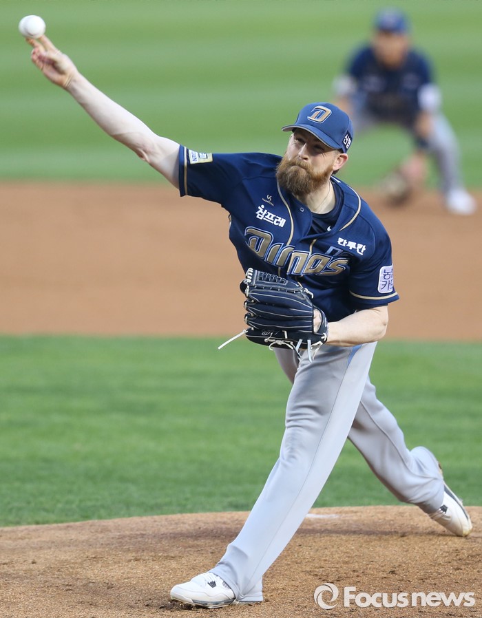 (서울=포커스뉴스) 19일 서울 잠실구장에서 열린 2016 프로야구 NC-LG 경기에서 1회말 NC 선발투수 해커가 투구하고 있다.