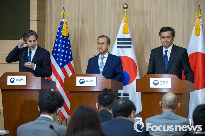 (서울=포커스뉴스) 임성남 외교부 제1차관이 19일 오후 서울 종로구 외교부에서 '제3차 한미일 외교차관 협의회' 결과 발표를 하고 있다.