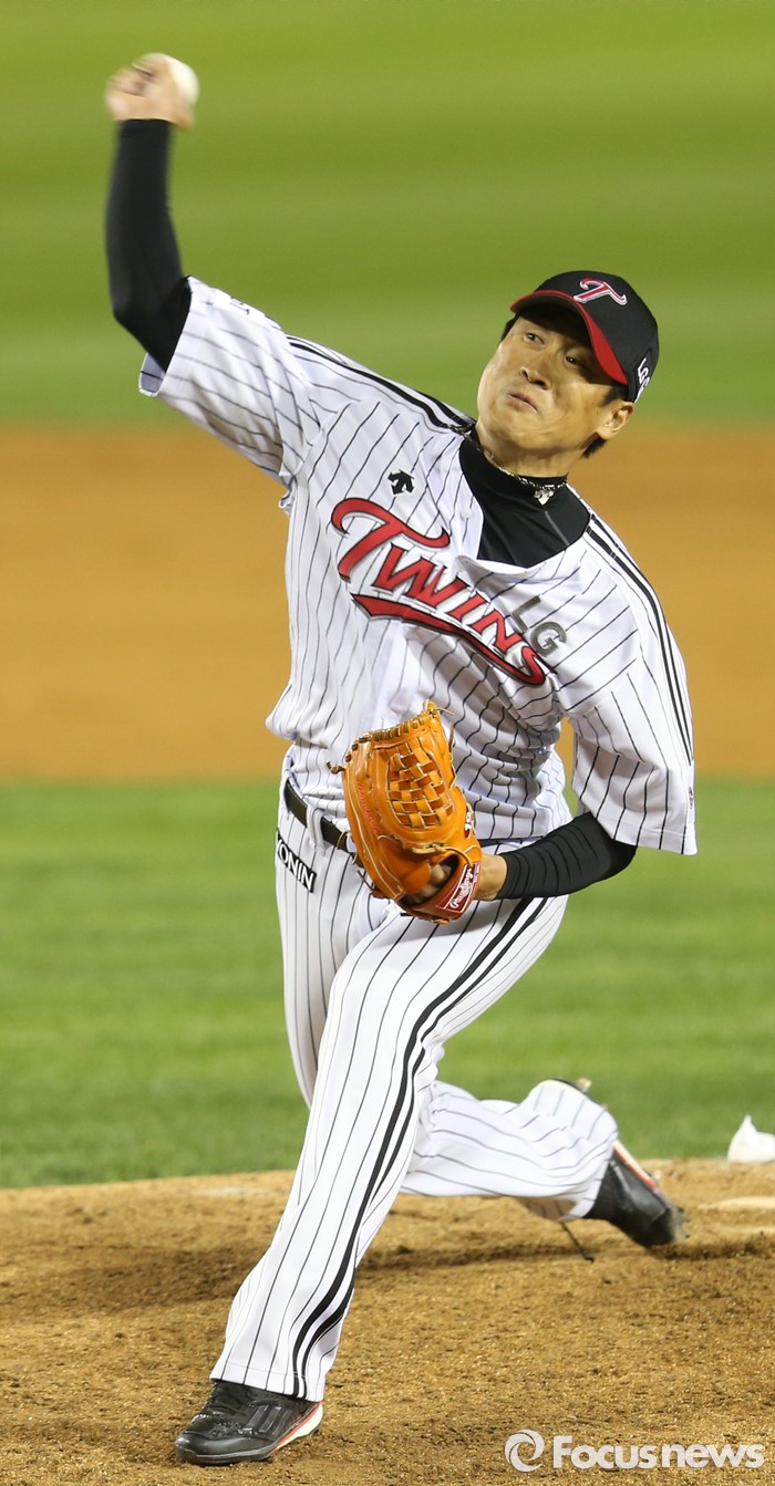 (서울=포커스뉴스) 19일 서울 잠실구장에서 열린 2016 프로야구 NC-LG 경기에서 LG 투수 정현욱이 8회 마운드에 올라 투구하고 있다.