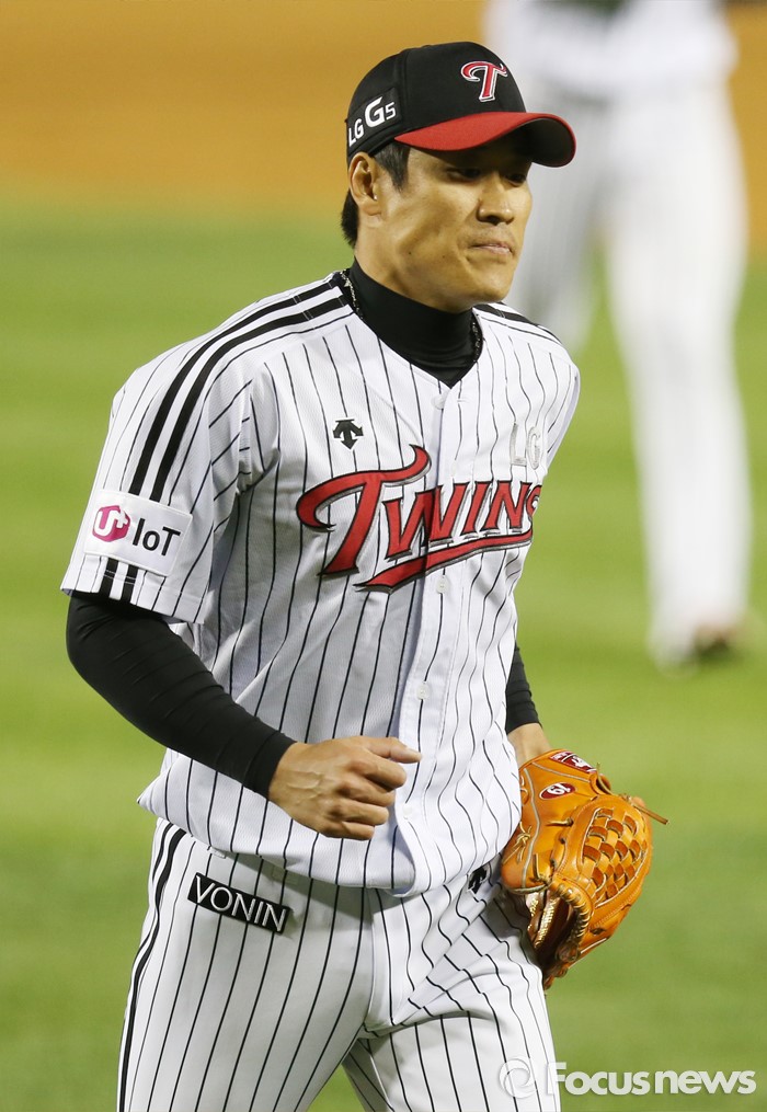 (서울=포커스뉴스) 19일 서울 잠실구장에서 열린 2016 프로야구 NC-LG 경기에서 LG 투수 정현욱이 8회 수비를 마치고 덕아웃으로 들어가고 있다.