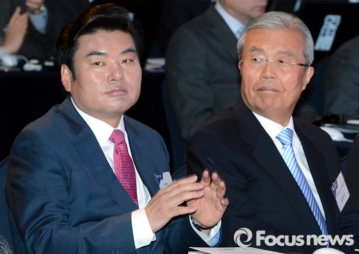 (서울=포커스뉴스) 원유철(왼쪽) 새누리당 원내대표와 김종인 더불어민주당 비대위 대표가 20일 오전 서울 중구 을지로 롯데호텔에서 열린 2016 한국포럼에 참석해 자리하고 있다.