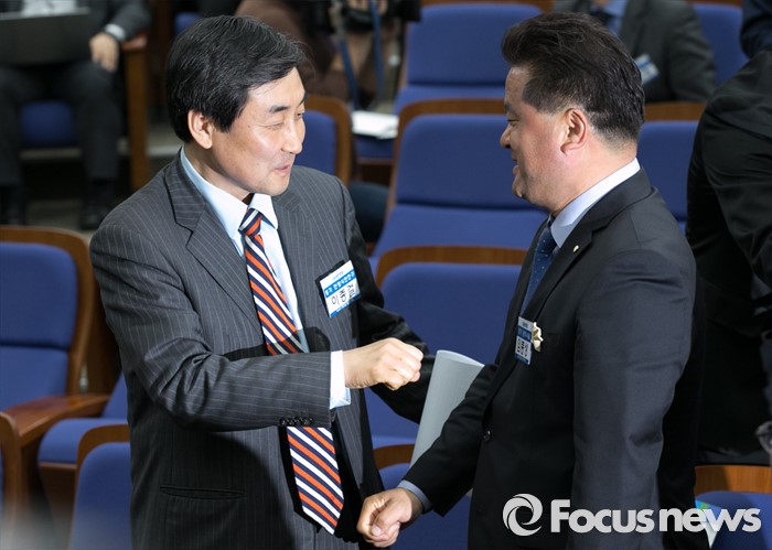 (서울=포커스뉴스) 20일 오전 서울 여의도 국회에서 열린 더불어민주당 20대 총선 당선자 대회에 참석한 이종걸(왼쪽) 원내대표와 임종성 당선인이 대화하고 있다.
