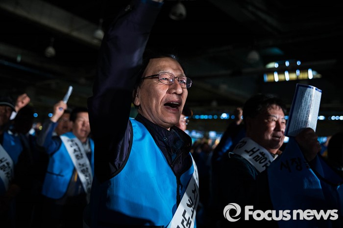 (서울=포커스뉴스) 노량진수산시장 현대화 사업으로 상인들과 수협 간 갈등이 고조되고 있는 20일 오후 서울 영등포구 노량진수산시장에서 전국 어민 2000여 명이 시장 정상화를 촉구하는 총궐기 대회를 열고 있다.