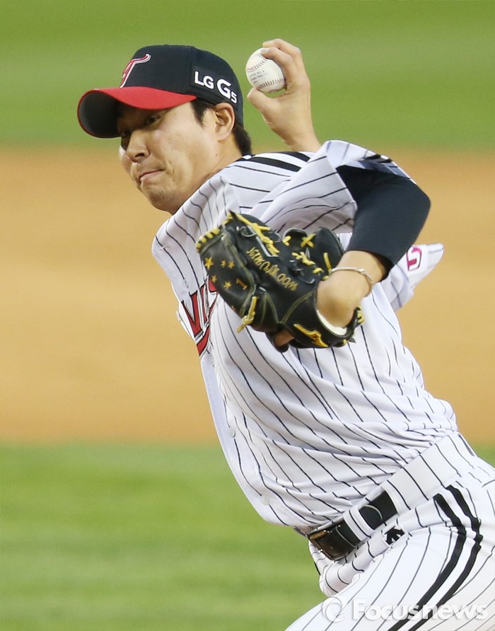 (서울=포커스뉴스) 20일 서울 잠실구장에서 열린 2016 프로야구 NC-LG 경기에서 1회초 LG 선발투수 우규민이 투구하고 있다.