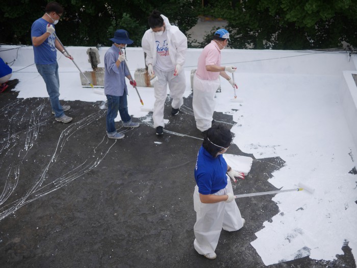 옥상에 칠하는 방수 페인트의 색을 밝은 색으로 바꾸는 것만으로도 건물 온도를 낮출 수 있기 때문이다.