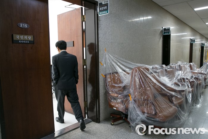 (서울=포커스뉴스) 21일 오전 서울 여의도 국회 본관에서 국민의당 대표실과 원내대표실 등 집무실 공사가 한창 진행되고 있다.