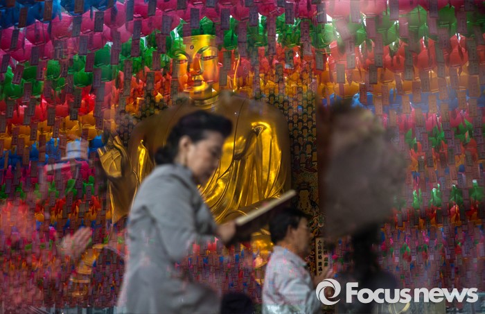 (서울=포커스뉴스) 불자들이 21일 오전 서울 종로구 조계사에서 열린 관불의식-금박공양 행사를 시작하기 전 기도를 하고 있다. 관불은 불교의식으로 탄생불의 형상에 물을 부어 씻겨 자신의 마음에 쌓인 죄와 번뇌를 맑고 깨끗하게 만들어 복을 누리게 된다고 알려진 의식이다.