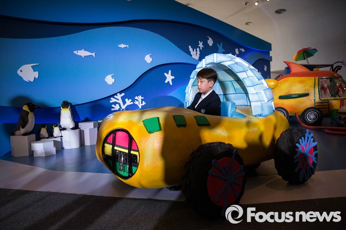 (서울=포커스뉴스) 21일 오전 서울 중구 동대문디자인플라자(DDP) 디자인 놀이터에서 열린 '제1회 브릴리언트 키즈모터쇼' 론칭행사에서 어린이가 직접 상상한 자동차를 시승하고 있다.
