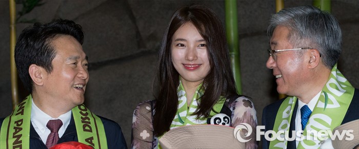 (용인=포커스뉴스) 21일 오전 경기도 용인시 에버랜드에서 열린 '판다월드 개관식'에서 남경필 경기도지사, 미쓰에이 수지, 김종덕 문화체육관광부 장관이 대화를 나누고 있다.