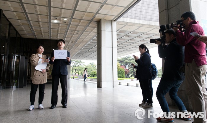 (서울=포커스뉴스) 21일 오후 서울중앙지방검찰청에서 김삼수 경제정의실천시민연합 부장이 전국경제인연합회의 금융실명제위반 및 조세포탈 혐의 여부 등에 대한 수사를 의뢰하고 있다.