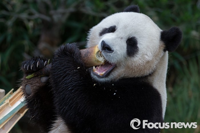 (용인=포커스뉴스) 21일 오전 경기도 용인시 에버랜드에서 열린 '판다월드 개관식'에서 러바오가 먹이를 먹고 있다.