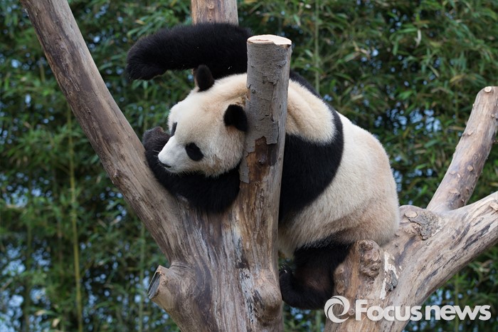 (용인=포커스뉴스) 21일 오전 경기도 용인시 에버랜드에서 열린 '판다월드 개관식'에서 아이바오가 낮잠을 자고 있다.