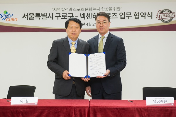 (서울=포커스뉴스) 프로야구 넥센이 21일 고척돔에서 서울 구로구와 구로구민의 문화복지향상 및 지역발전을 위한 업무협약을 체결했다.