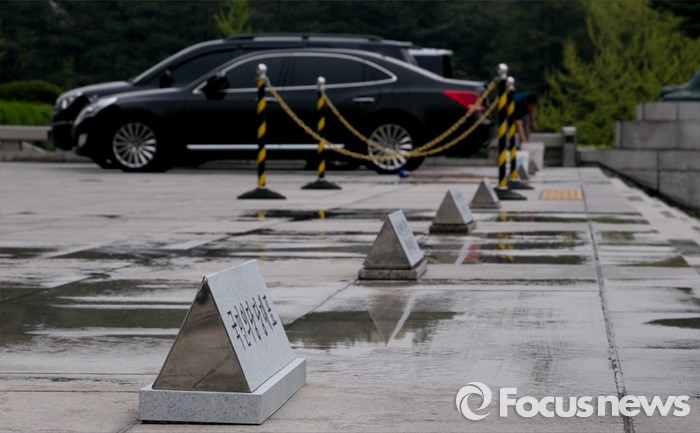 (서울=포커스뉴스) 21일 오전 서울 여의도 국회 본청 앞 주차장에 국민의당 지도부의 주차공간을 위한 명패가 설치되어 있다.