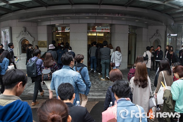 (서울=포커스뉴스) 21일 오후 서울 중구 명동예술극장에서 열린 대테러훈련이 끝나고 일반 관객들이 다시 입장하고 있다.