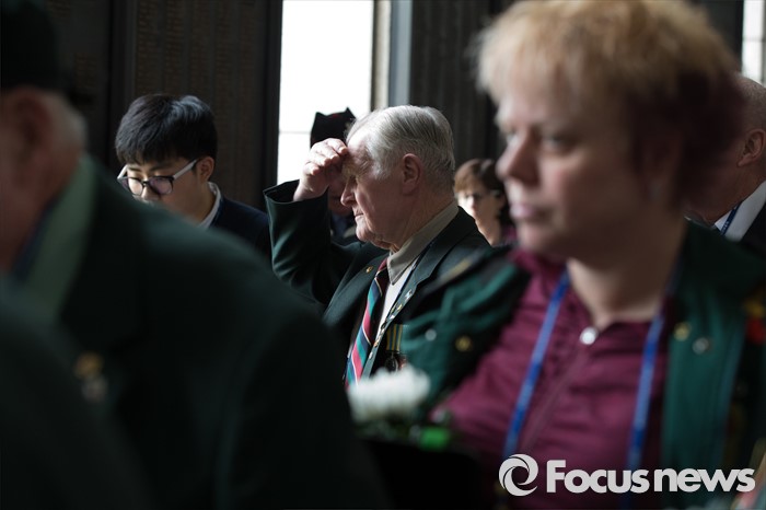 (서울=포커스뉴스) 임진강 및 가평전투 65주년을 맞은 21일 오후 서울 용산구 전쟁기념관에 6.25전쟁에 참전했던 영연방(영국, 캐나다, 호주, 뉴질랜드) 참전용사들이 방문해 유엔(UN) 참전국 전사자 명비를 보고 있다.