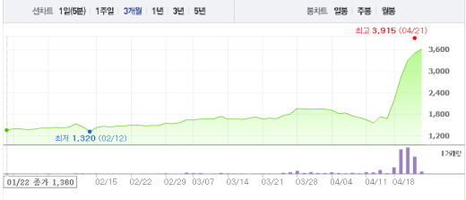 한편, 20일 여론조사전문기관 리얼미터가 국민일보 의뢰로 조사한 차지 대선주자 지지도에서 문재인 전 대표는 30.7%로 23.7%인 안철수 국민의당 상임대표를 이기고 1위에 올랐다. 문 전 대표는 전월보다 4.3%포인트 지지율이 상승했고 안철수 대표도 3.8%포인트 지지율이 올랐다.주가흐름<사진출처=네이버 캡쳐>