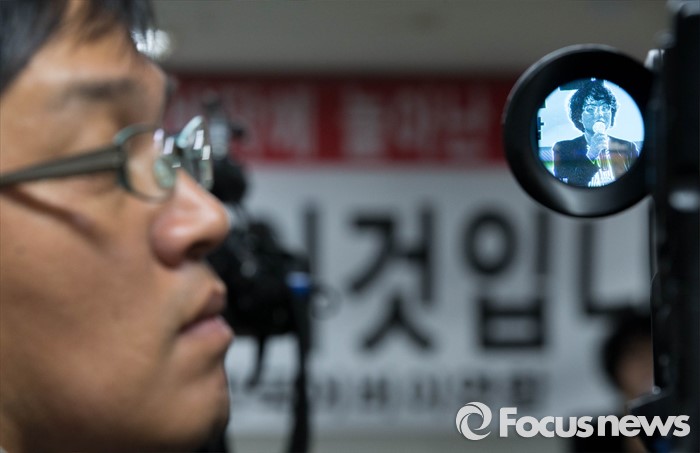 (서울=포커스뉴스) 김미화 자유민연합 대표가 22일 오전 서울 종로구에 위치한 어버이연합 사무실에서 기자회견을 하고 있다. 전경련에서 자금지원을 받은 의혹으로 논란에 휩싸인 어버이연합은 이날 기자회견을 열고 언론에 보도된 어버이연합 관련 기사들에 반박했다.