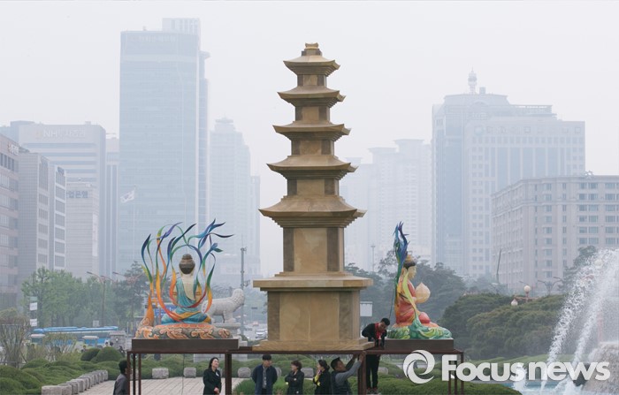 (서울=포커스뉴스) 석가탄신일을 3주 가량 앞둔 22일 오후 서울 여의도 국회 본청 앞 분수광장에 연등이 설치되어 있다.