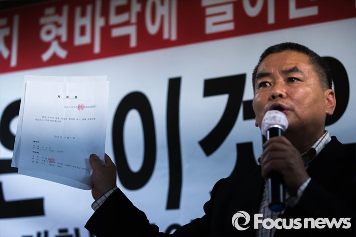 (서울=포커스뉴스) 추선희 어버이연합 사무총장이 22일 오전 서울 종로구에 위치한 어버이연합 사무실에서 기자회견을 하고 있다. 전경련에서 자금지원을 받은 의혹으로 논란에 휩싸인 어버이연합은 이날 기자회견을 열고 언론에 보도된 어버이연합 관련 기사들에 반박했다.