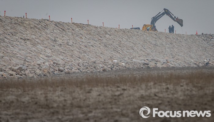 (인천=포커스뉴스) 마흔 여섯번째 지구의 날을 맞은 22일 오전 경기 인천시 영종도 갯벌에 매립공사가 진행되고 있다. 지구의 허파로 불리는 갯벌은 생태계 면적의 0.3%에 불과하지만 자연의 정화조로서 생태적 가치는 숲의 10배, 농경지의 100배에 달한다. 간척과 매립 등 인간의 욕심으로 서서히 사라져가는 갯벌, 어머니 지구의 준엄한 경고를 새겨들을 때이다.