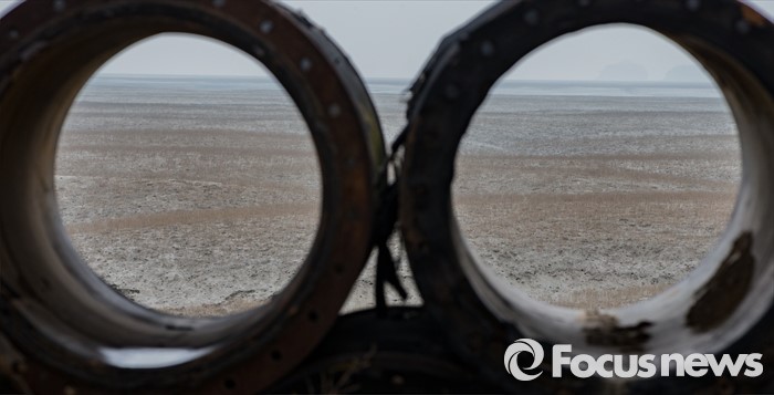 (인천=포커스뉴스) 마흔 여섯번째 지구의 날을 맞은 22일 오전 경기 인천시 영종대교 아래 쌓여있는 간척용 파이프들 너머로 갯벌이 보이고 있다. 지구의 허파로 불리는 갯벌은 생태계 면적의 0.3%에 불과하지만 자연의 정화조로서 생태적 가치는 숲의 10배, 농경지의 100배에 달한다. 간척과 매립 등 인간의 욕심으로 서서히 사라져가는 갯벌, 어머니 지구의 준엄한 경고를 새겨들을 때이다.