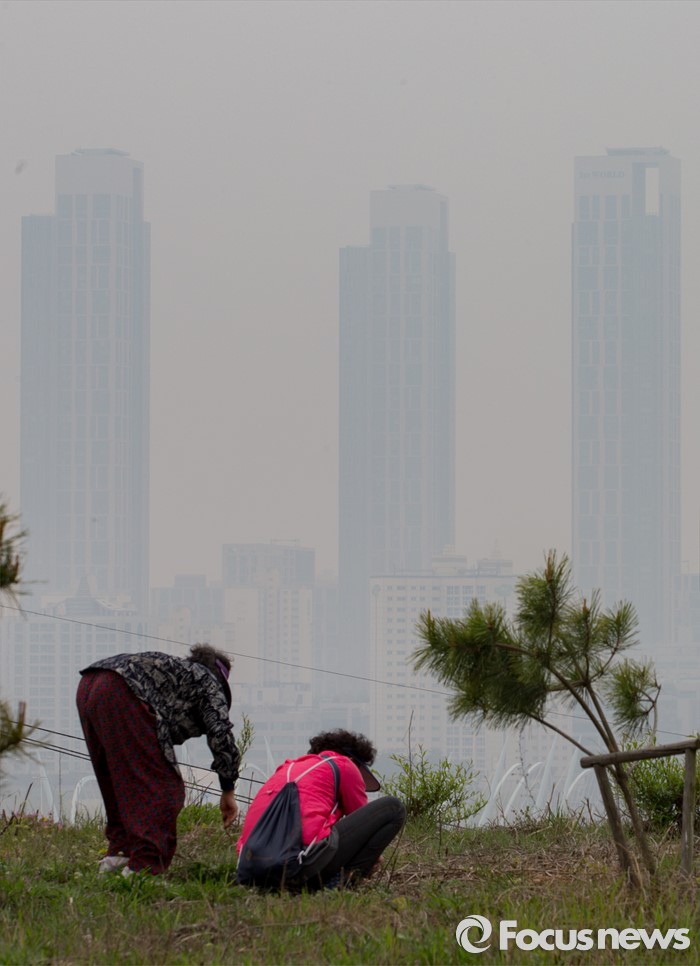 | △ 황사 속 쑥 캐기 |