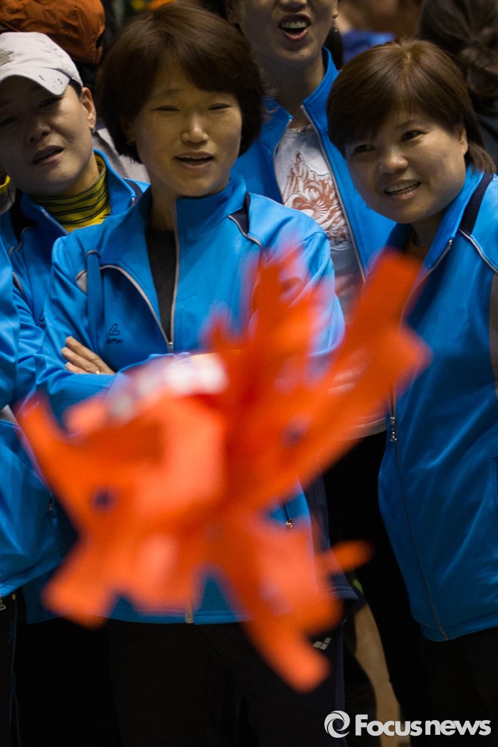(서울=포커스뉴스) 24일 오전 서울 송파구 잠실실내체육관에서 열린 '2016 서울시민 생활체육대회' 참가자들이 제기차기를 구경하고 있다.