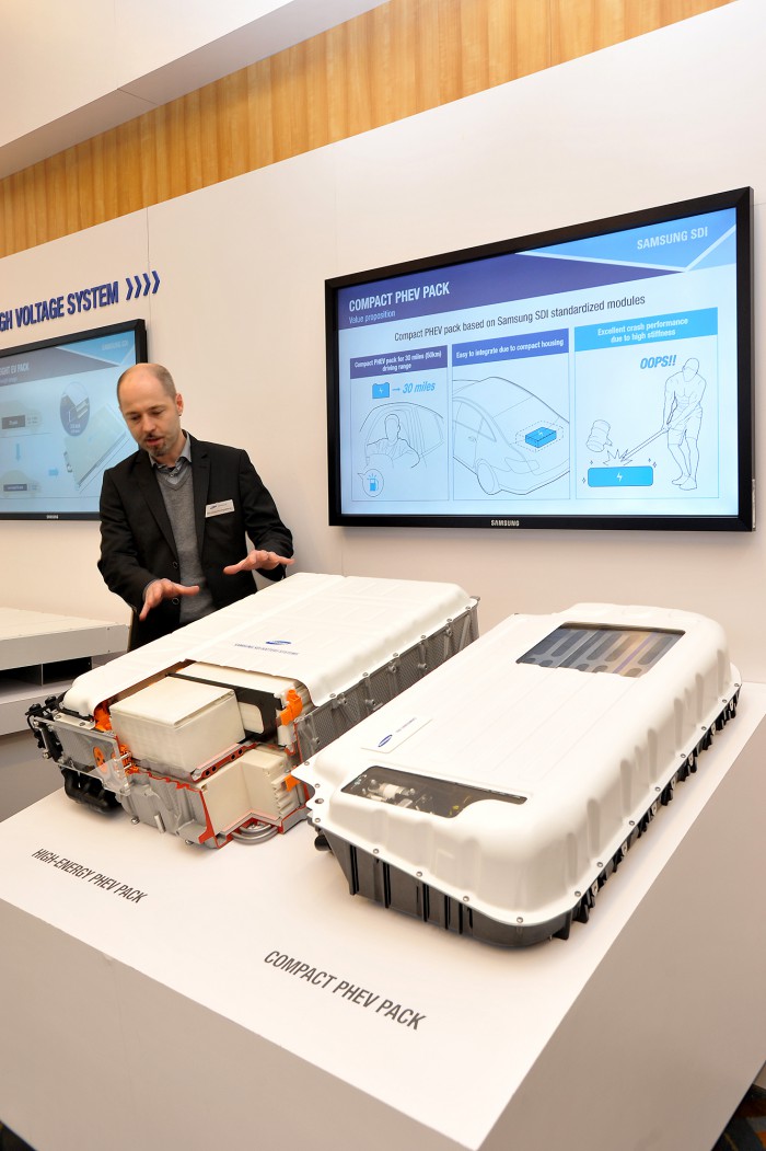 삼성SDI는 중국 수주 매출은 물류차가 희망적이고 버스는 부정적이란 전망도 내놨다. 삼성SDI 측은 "중국 자동차 OEM 수주는 5월 물류차 보조금 지급 목록에 등재될 예정"이라며 물류차 배터리 판매도 증가할 것이라고 예측했다.삼성SDI가 디트로이트 모터쇼에 참가해 전기차용 배터리셀 시제품 등을 11일 선보였다. <사진제공=삼성SDI>