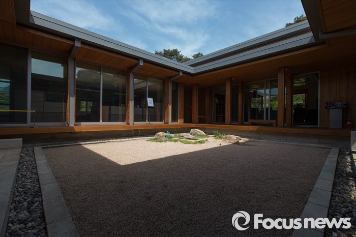 (김해=포커스뉴스) 고 노무현 전 대통령 서거 7주기를 앞두고 1일 오전 노 전 대통령의 사저가 공개되고 있다. 사진은 서재앞 뜰의 모습.