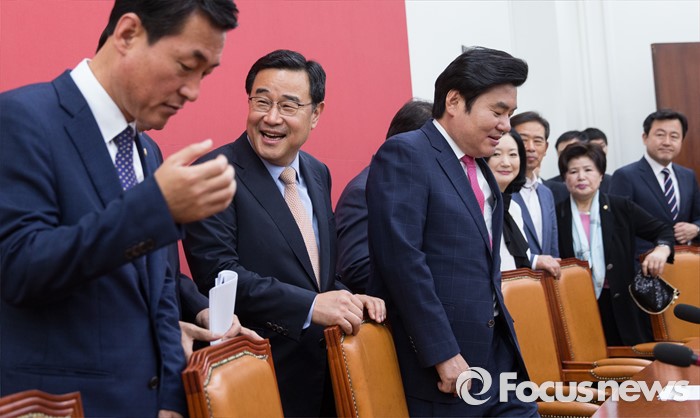 | △ 마지막 회의 참석하는 원내지도부 |
