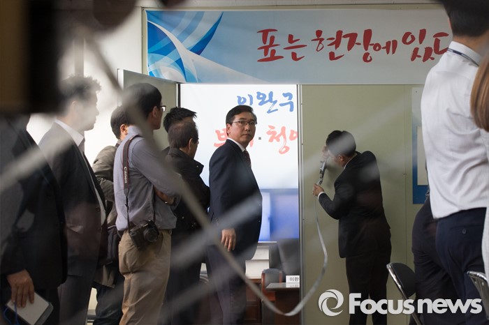 (부여=포커스뉴스) 29일 오후 이완구 전 국무총리가 2013년 재보궐 선거 때 사용한 충남 부여 선거사무소에서 사법부 관계자들이 현장검증을 실시하고 있다.