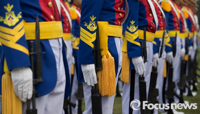 (서울=포커스뉴스) 29일 오후 서울 노원구 육군사관학교에서 열린 개교 70주년 기념식에서 생도들이 도열하고 있다.