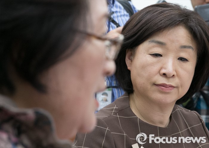(서울=포커스뉴스) 심상정(오른쪽) 정의당 상임대표가 28일 오전 서울 여의도 국회에서 열린 가습기 살균제 3, 4등급 피해자 의료기록 분석 결과 및 피해 진상규명을 위한 간담회에 참석해 피해자들의 발언을 듣고 있다.