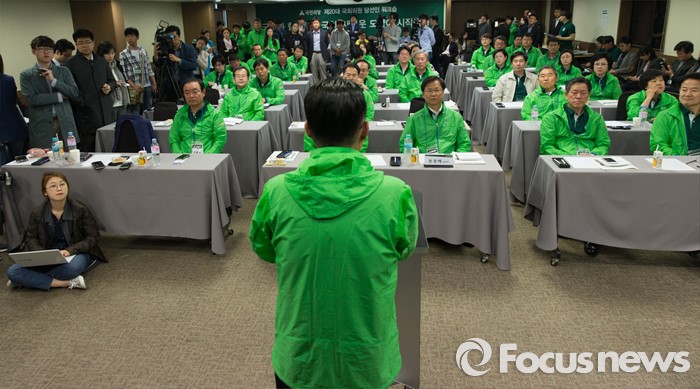(양평=포커스뉴스) 국민의당 20대 총선 당선인 워크숍에서 합의 추대된 박지원 신임 원내대표가 27일 오전 경기도 양평 한화리조트에서 인사말을 하고 있다.
