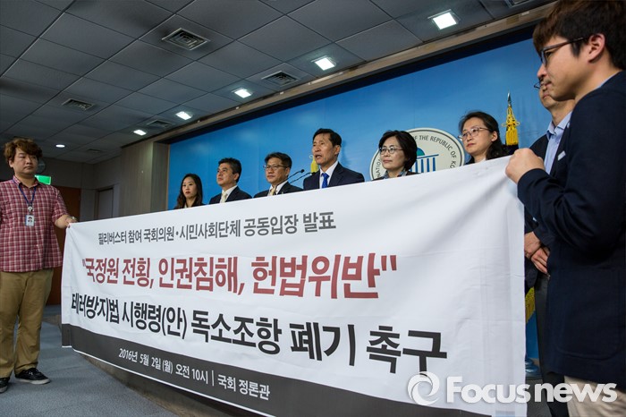 (서울=포커스뉴스) 이학영 더불어민주당 의원이 2일 오전 서울 여의도 국회에서 테러방지법 시행 관련 기자회견을 하고 있다.