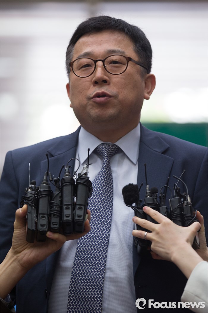 (성남=포커스뉴스) 강학주 LG유플러스 사업협력담당 상무가 29일 오전 경기도 성남시 한국정보통신기술협회에서 진행된 이동통신용 주파수 경매에 참가하기 위해 입장, 취재진 질문에 답하고 있다.