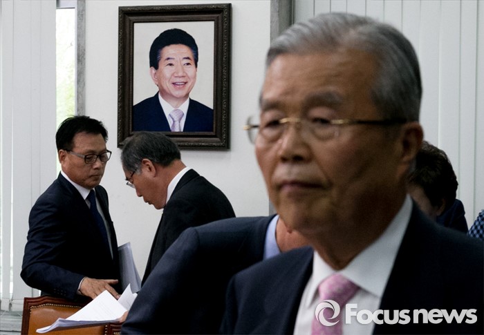 | △ 퇴장하는 김종인 뒤 노무현 전 대통령 사진 |