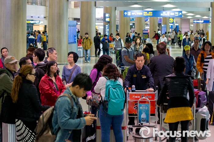 (영종도=포커스뉴스) 중국 노동절 연휴와 일본 골든 위크를 맞아 1일 외국인 관광객들이 인천국제공항을 통해 입국하고 있다.