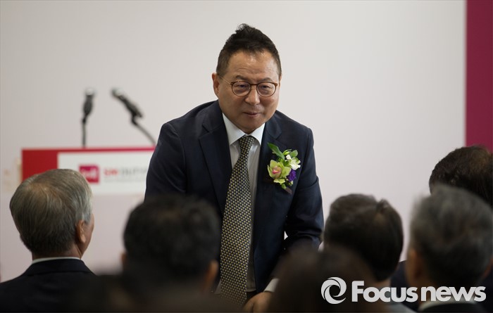 (서울=포커스뉴스) 29일 오전 서울 종로구 SM면세점 서울점에서 열린 그랜드 오픈식에 참석한 권희석 SM면세점 대표이사가 내빈들에게 인사하고 있다.