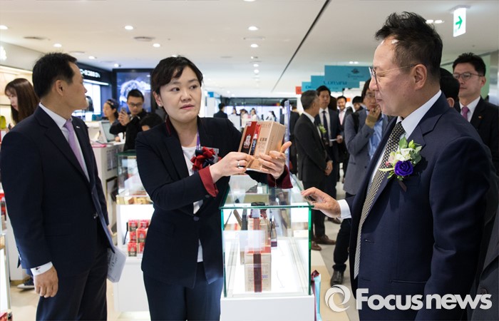 (서울=포커스뉴스) 29일 오전 서울 종로구 SM면세점 서울점에서 열린 그랜드 오픈식에 참석한 권희석 SM면세점 대표이사와 내빈들이 매장을 둘러보고 있다.