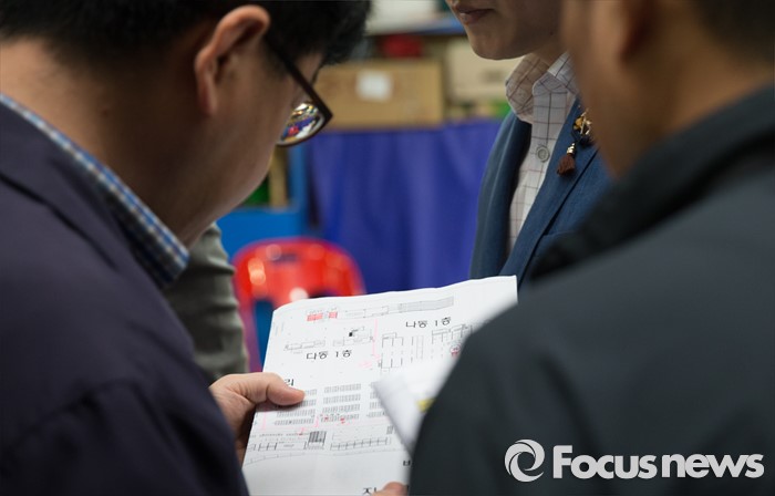 (서울=포커스뉴스) 27일 오전 서울 동작구 노량진 수산시장에서 법원 공무원들이 점유이전금지 가처분 집행을 위해 점포 위치를 파악하고 있다