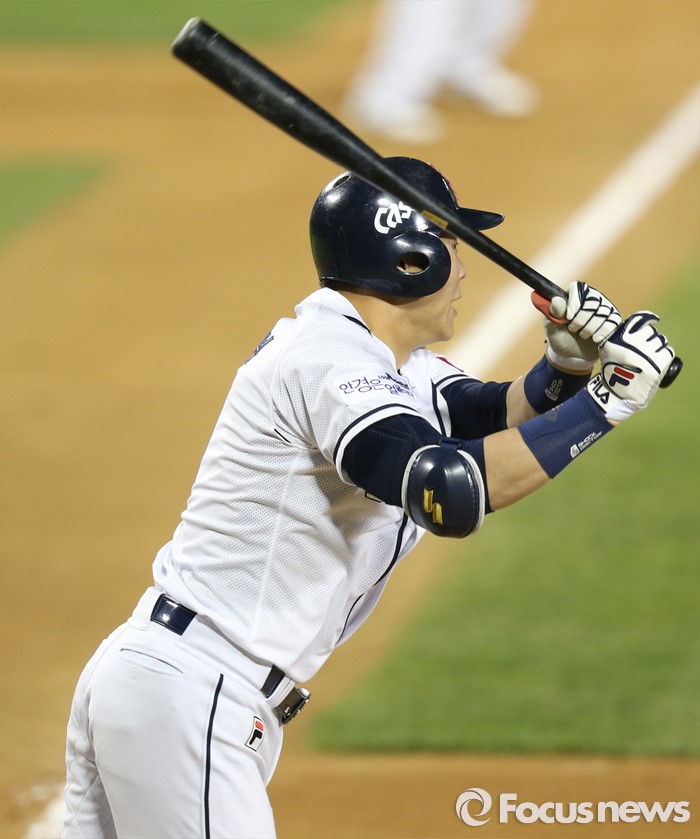 | △ 역전 2루타 날리는 박세혁 |