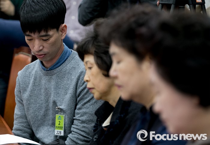 (서울=포커스뉴스) 28일 오전 서울 여의도 국회에서 심상정 정의당 상임대표 주재로 열린 가습기 살균제 3, 4등급 피해자 의료기록 분석 결과 및 피해 진상규명을 위한 간담회에 참석한 피해자들이 심 대표의 발언을 듣고 있다.