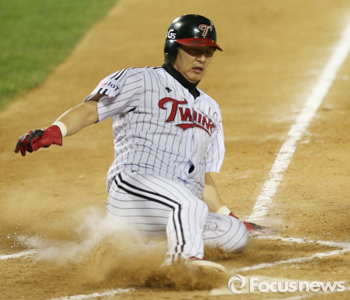 (서울=포커스뉴스) 29일 서울 잠실구장에서 열린 2016 프로야구 kt-LG 경기 7회말 1사 만루에서 LG 이병규의 우전안타때 2루주자 서상우가 홈인하고 있다.