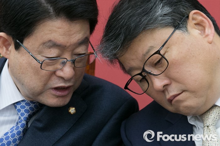 | △ 정희수·조원진, 무슨 대화? |